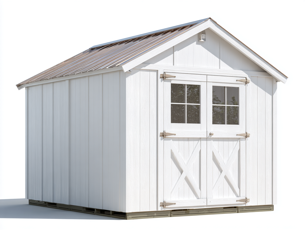 Double front doors with integrated window panels allow easy access and natural light inside the shed. Reinforced door hardware improves stability and ensures smooth opening and closing during frequent use.